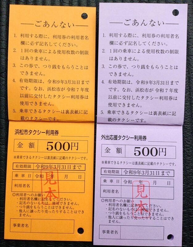 浜松市タクシー利用券使えます!